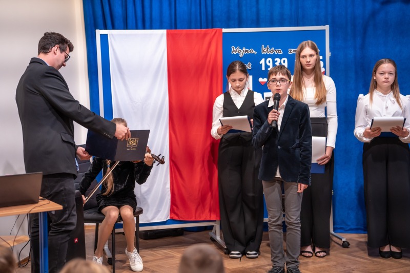 Słowa uznania kierujemy do Kornelii Gąsior, która interesuje się historią i sama zaproponowała przygotowanie akademii i opracowała jej scenariusz. Brawa za inicjatywę!