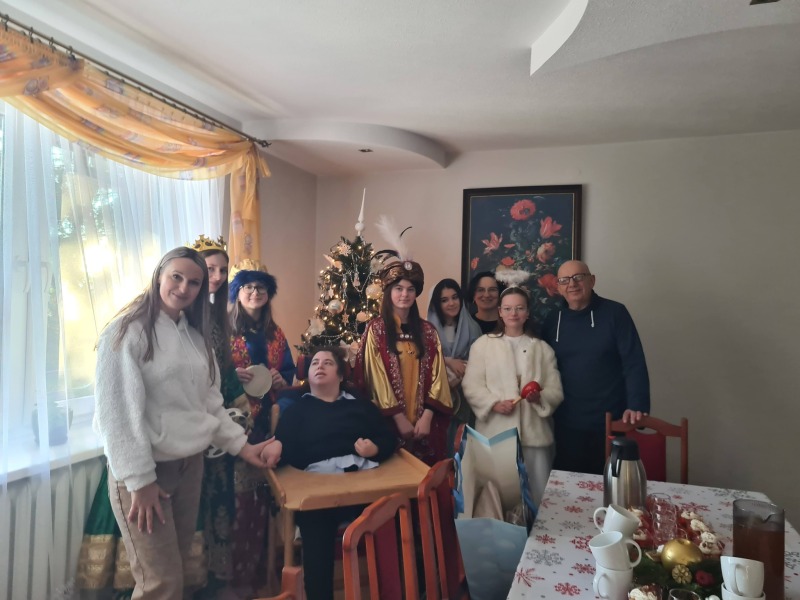 Dziś pięć dziewczynek z klasy VIII, ubrane w piękne stroje, udało się z kolędą do naszej wyjątkowej absolwentki Martyny.