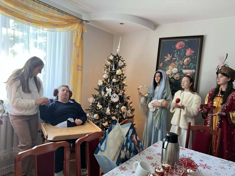 Uczennice przyniosły noworoczny podarunek oraz złożyły serdeczne życzenia. W domu Martyny rozbrzmiało kilka pięknie zaśpiewanych kolęd, które stworzyły wyjątkową, wzruszającą atmosferę.