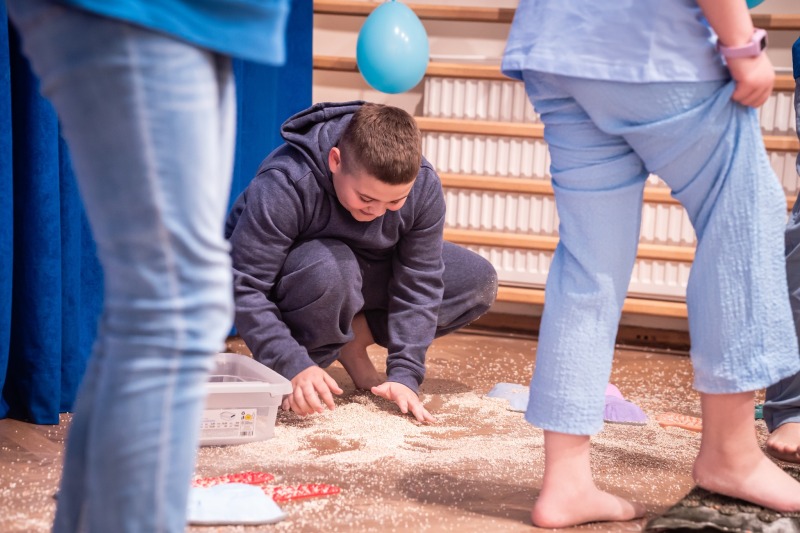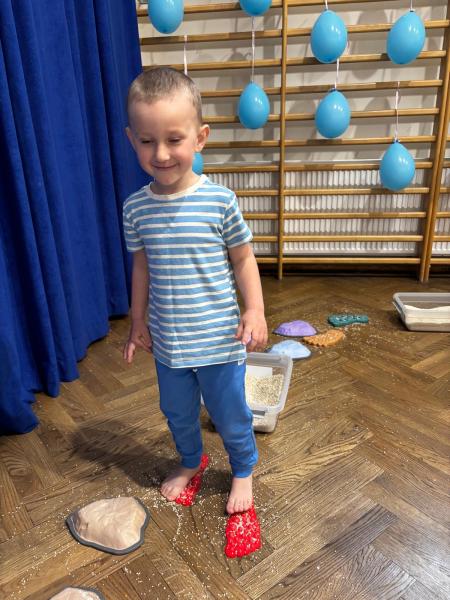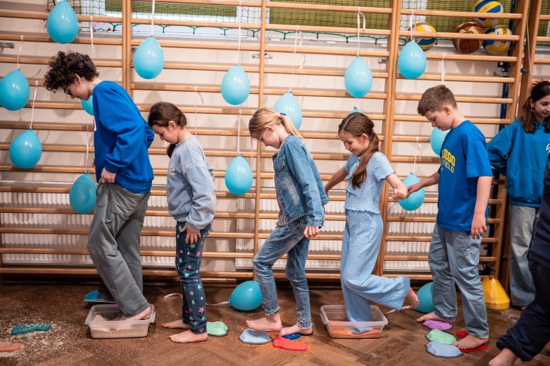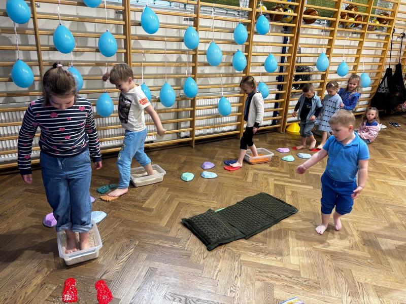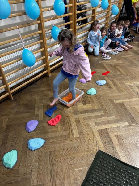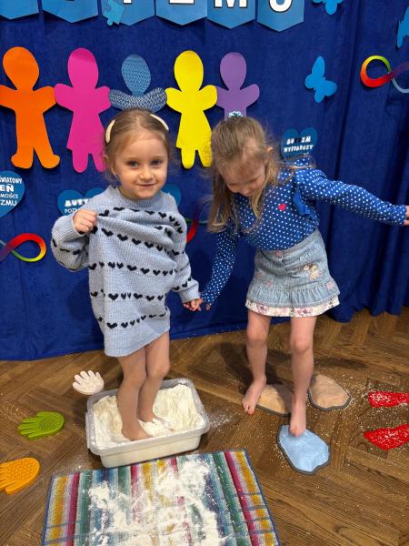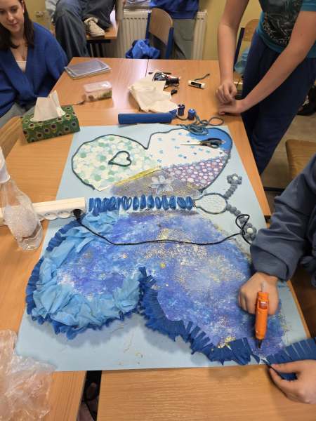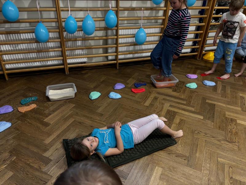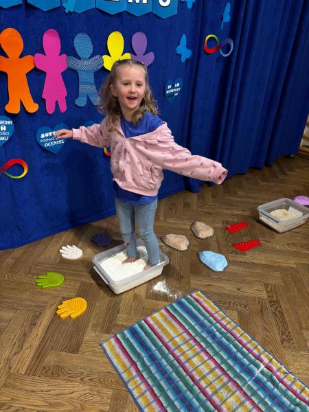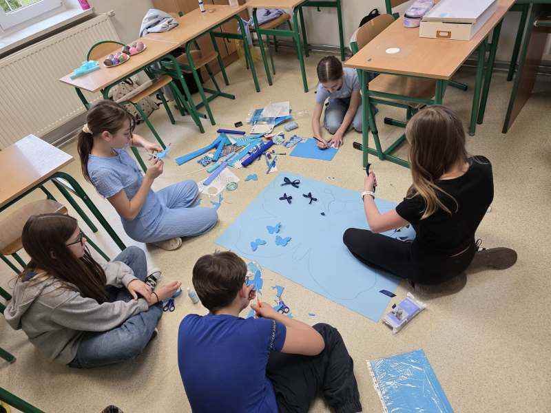 Dodatkową atrakcją była ścieżka sensoryczna, przez którą przeszedł każdy uczeń i przedszkolak, mogąc lepiej zrozumieć różnorodność odbierania bodźców. Na zakończenie każda klasa wykonała pracę plastyczną. Niebieskie motyle z różnych materiałów, symbolizowały wrażliwość, różnorodność i piękno każdego człowieka.