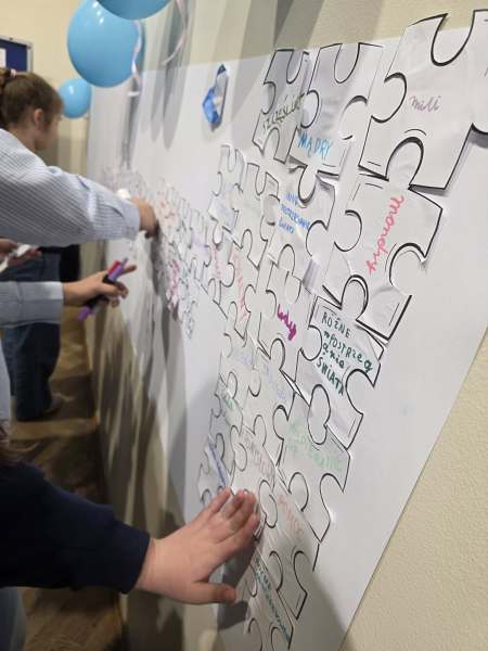 Wspólnie stworzyliśmy także wyjątkową tablicę z puzzli. Każdy uczeń miał okazję zapisać na swoim elemencie, czym dla niego jest neuroróżnorodność. Była to piękna lekcja współpracy i empatii.