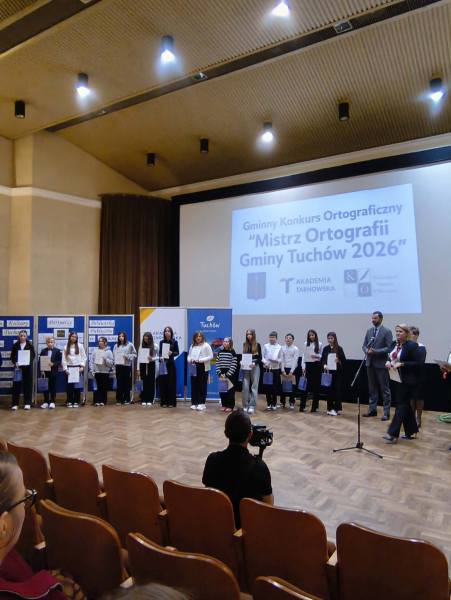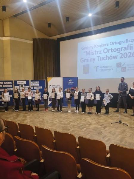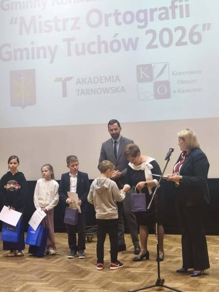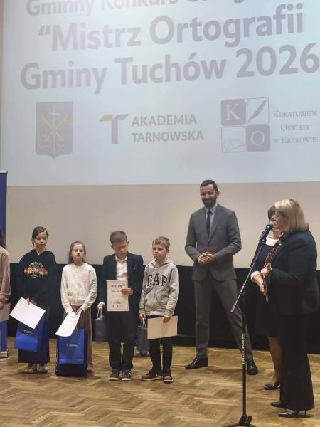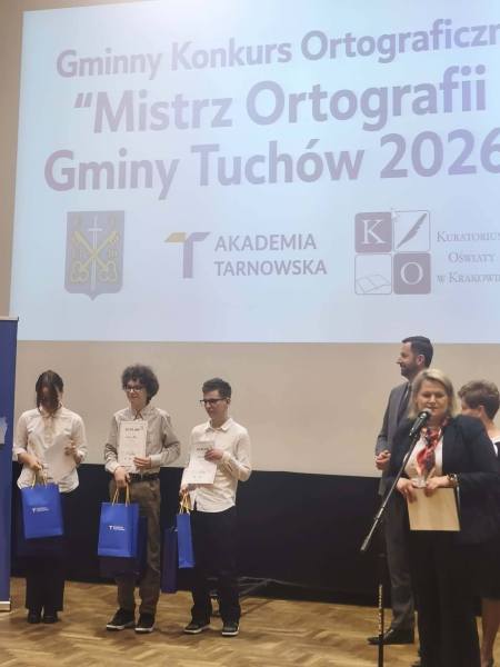 W dniu dzisiejszym w Domu Kultury w Tuchowie odbył się Gminny Konkurs Ortograficzny „Mistrz Ortografii Gminy Tuchów 2026”. Uczniowie naszej szkoły bardzo dobrze poradzili sobie z naszpikowanym trudnościami ortograficznymi tekstem dyktanda i zajęli wysokie lokaty końcowe: