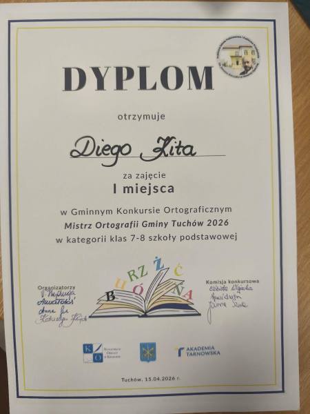- Diego Kita – 1 miejsce w kategorii klas VII – VIII !