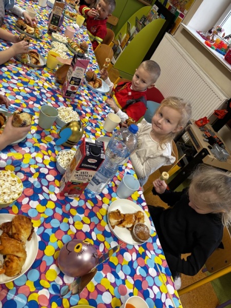 W naszym przedszkolu odbyła się radosna zabawa Andrzejkowa, podczas której dzieci przeniosły się w świat lekkiej, dziecięcej magii. Na początek przedszkolaki brały udział w andrzejkowych wróżbach – losowały obrazki oraz kolorowe karteczki z wesołymi przepowiedniami, które wywoływały wiele śmiechu i pozytywnych emocji. Następnie przyszedł czas na tańce i wspólne śpiewy. W rytmie ulubionych piosenek dzieci świetnie się bawiły, tworząc wesołe układy taneczne i angażując się w muzyczne zabawy. Po pełnych energii atrakcjach przedszkolaki usiadły do poczęstunku, który pozwolił im na chwilę odpoczynku i nabranie sił do dalszej zabawy.