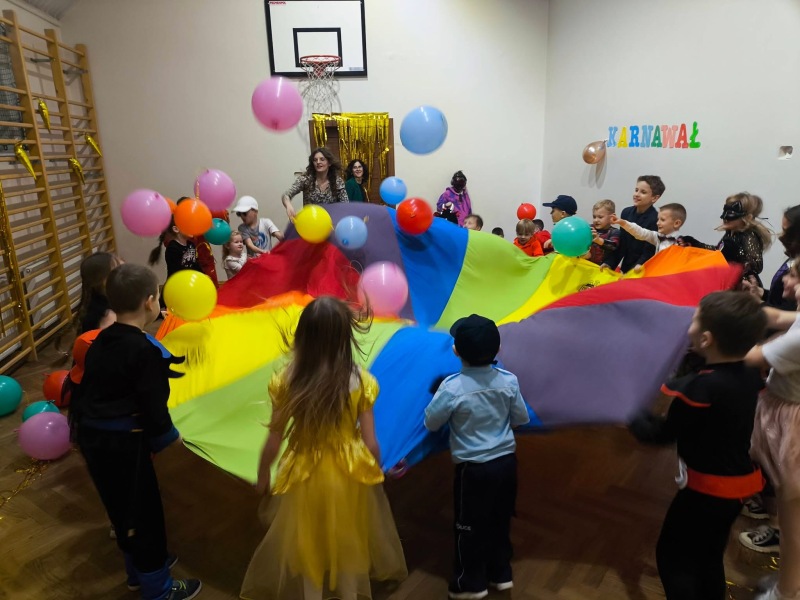 W naszym przedszkolu odbył się radosny Bal Karnawałowy, który dostarczył dzieciom mnóstwo uśmiechu i niezapomnianych wrażeń. Tego dnia sala wypełniła się kolorowymi strojami, muzyką i wesołą atmosferą.