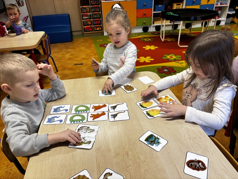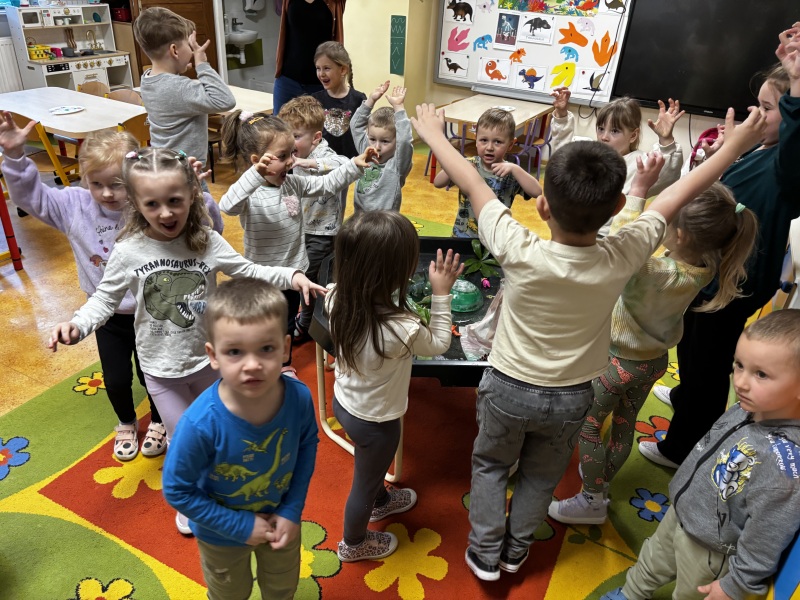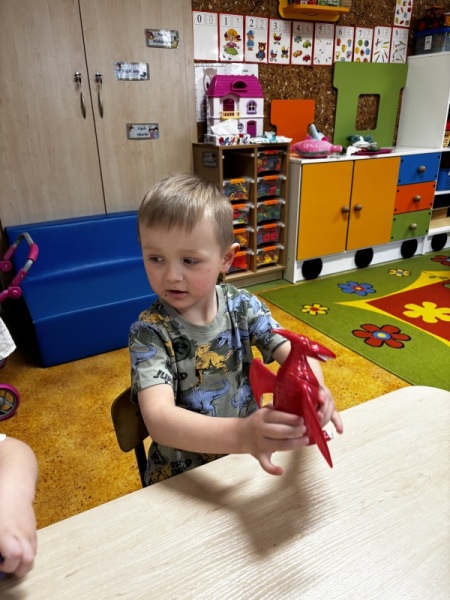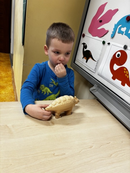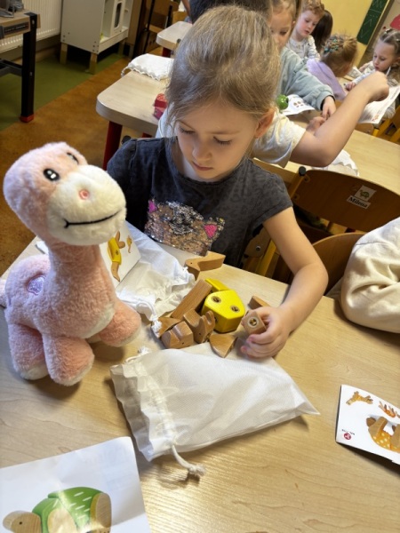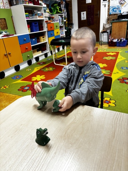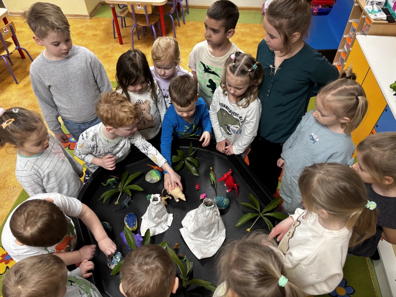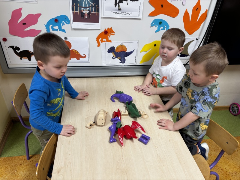 Mimo, iż żyły miliony lat temu dzieci z wielkim zainteresowaniem słuchały informacji o ich życiu. Obejrzały ciekawe filmy edukacyjne, dowiedziały się kim jest paleontolog. Możliwość wykonania dinozaura, zrobienia zdjęć w jego paszczy nikogo nie przerażały. W zabawie matematycznej dzieci segregowały dinozaury, liczyły, porównywały liczebność danego gatunku.