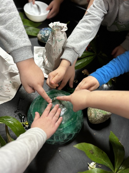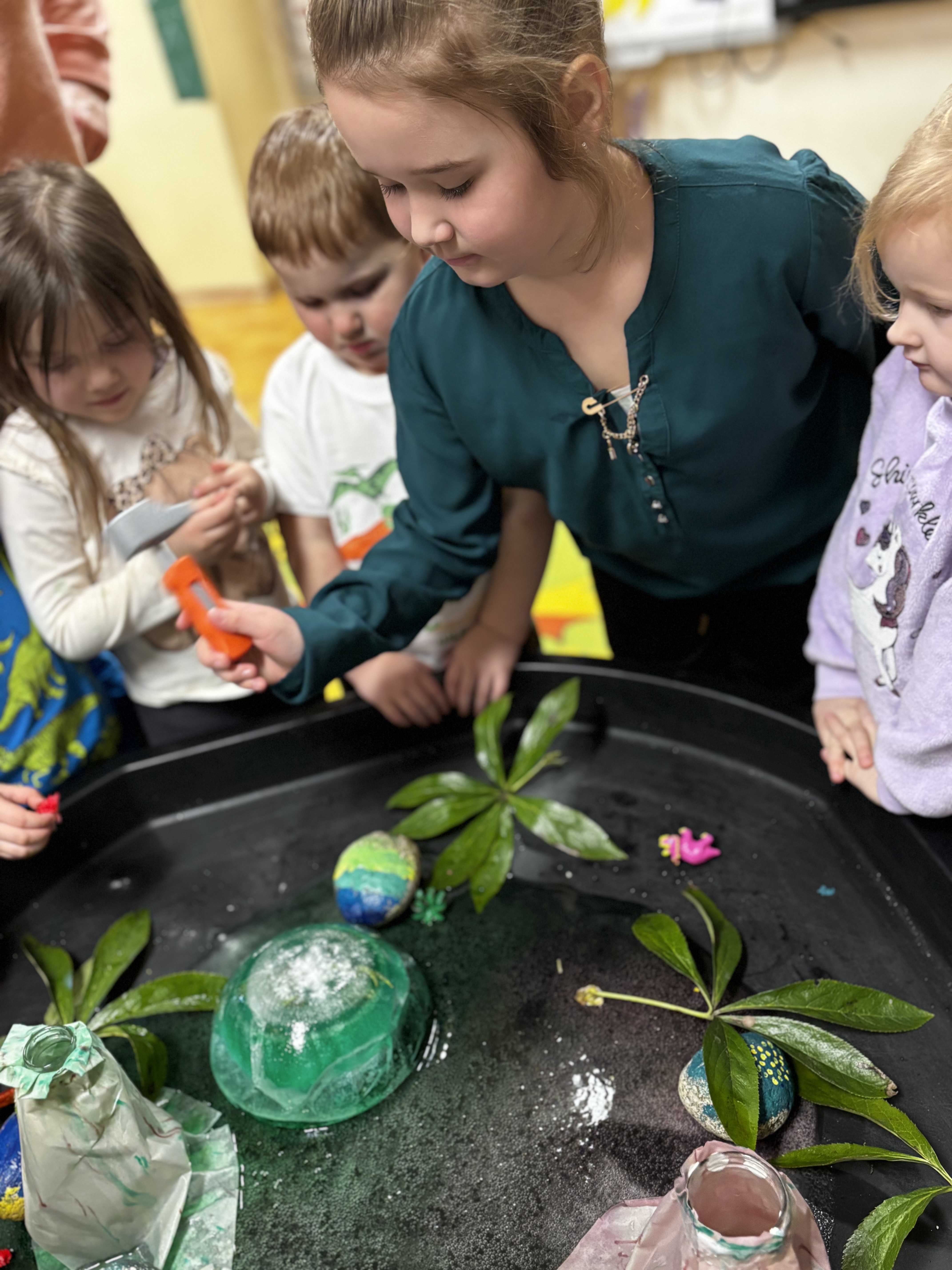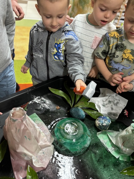 Zabawy badawcze: wulkan, fala, zamarznięta woda.