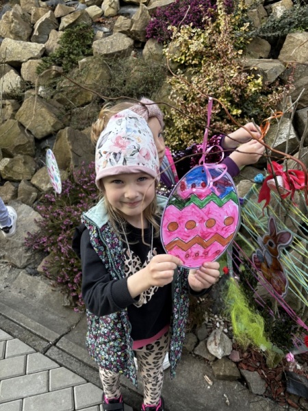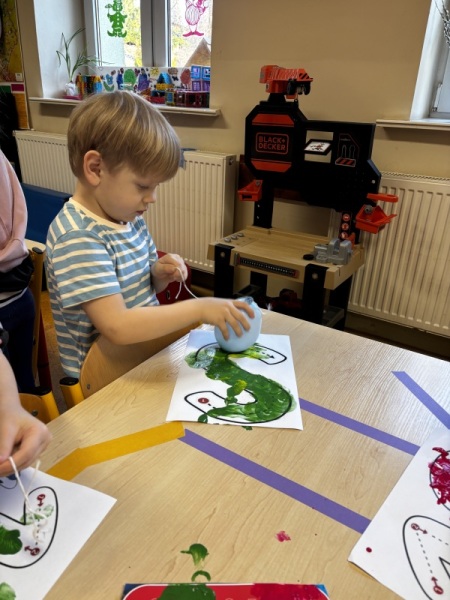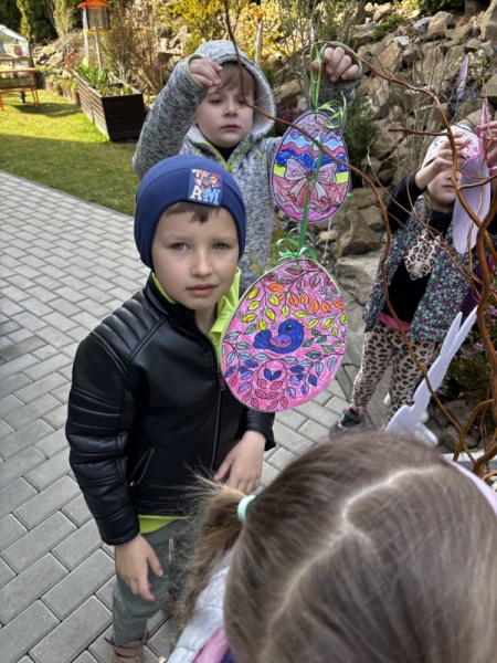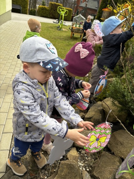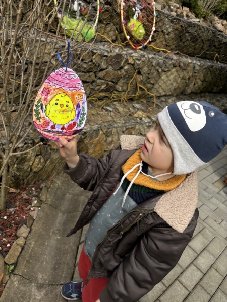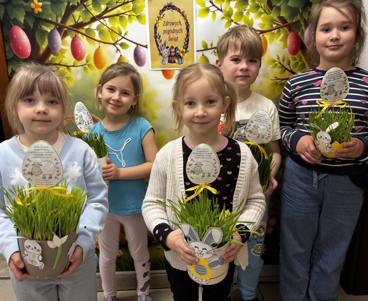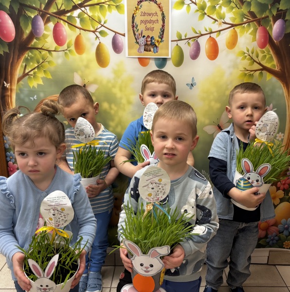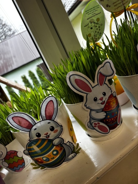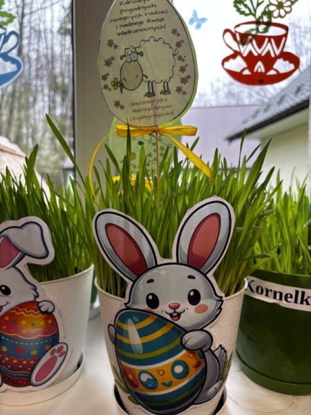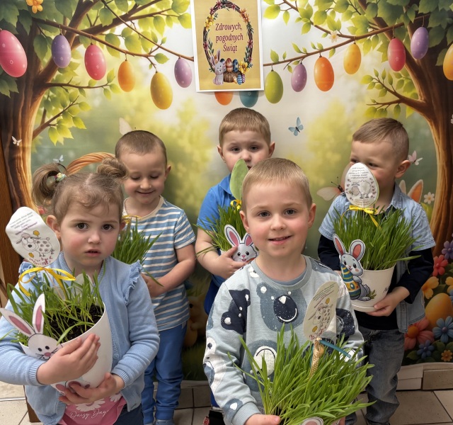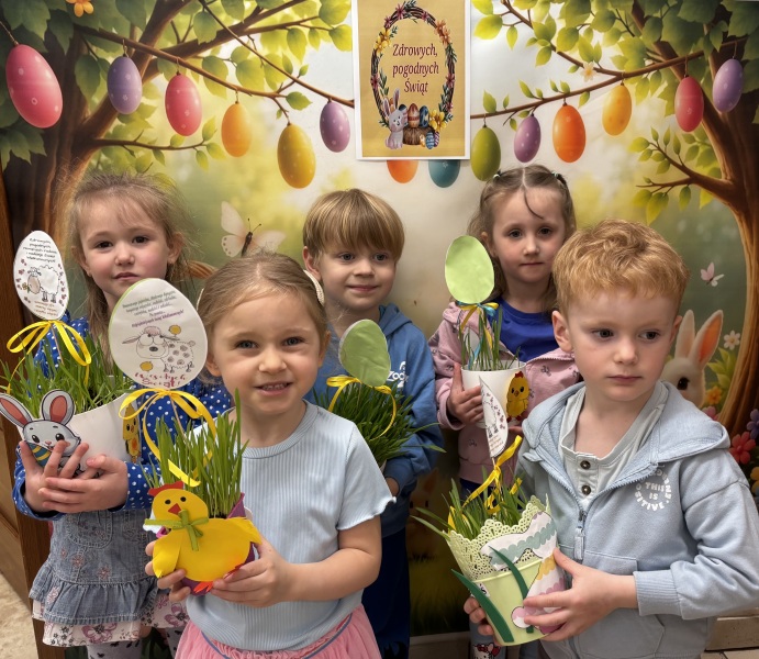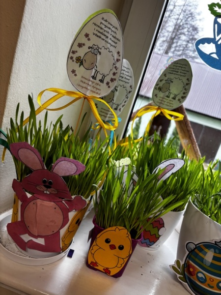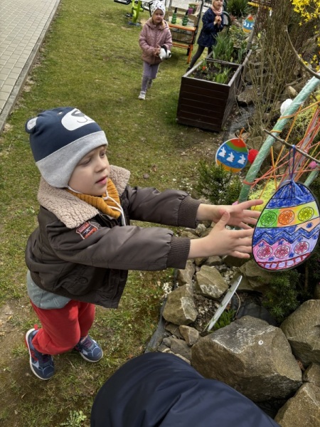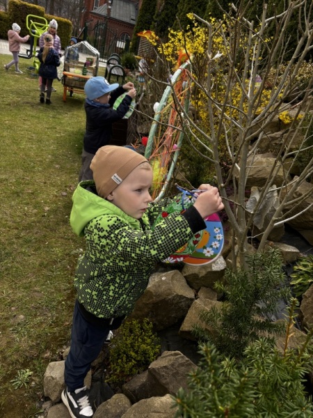 Dzieci z ogromnym zaangażowaniem przygotowywały się do nadchodzących Świąt Wielkanocnych. Kolorowały i ozdabiały pisanki, a także malowały jajka do koszyczków. Z radością zawieszały swoje prace na drzewkach, tworząc piękne, wiosenne dekoracje. Przedszkolaki troskliwie pielęgnowały również swój owies, który wcześniej samodzielnie zasiały – obserwując każdego dnia, jak rośnie i się zazielenia.