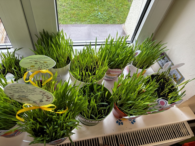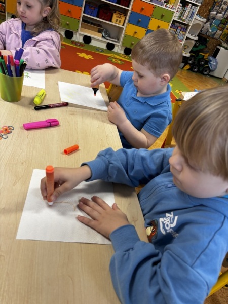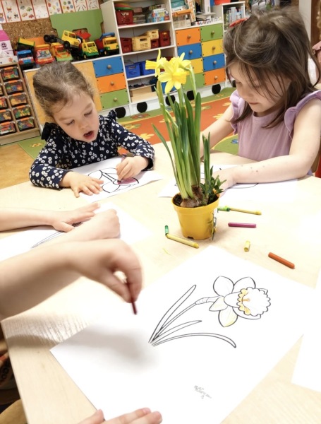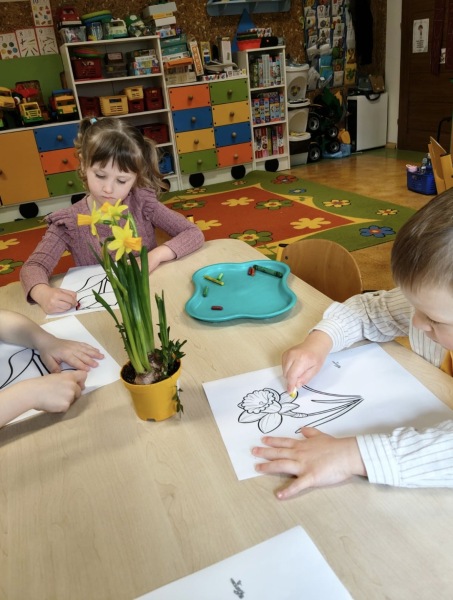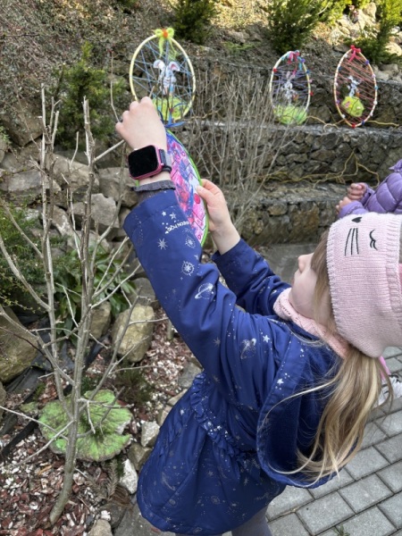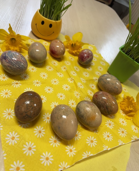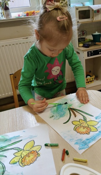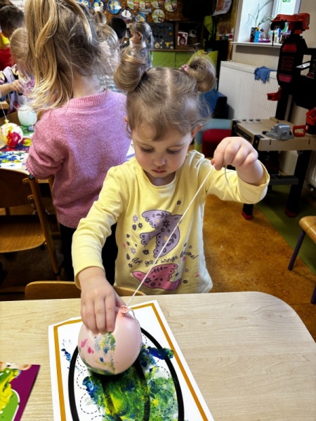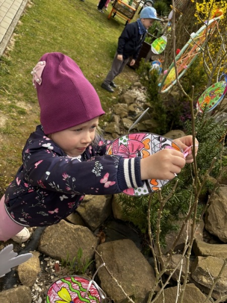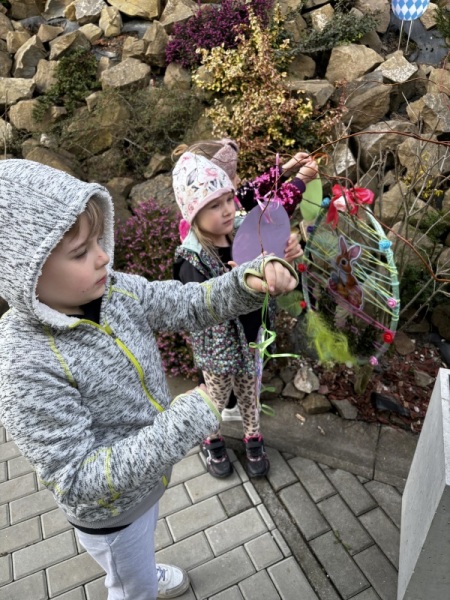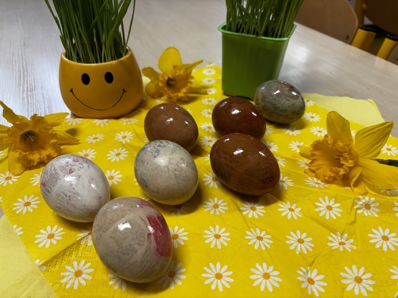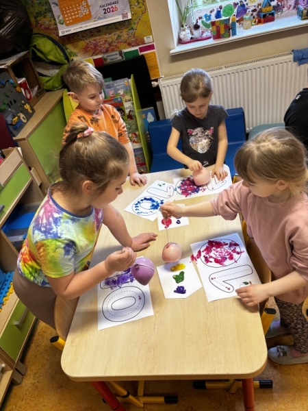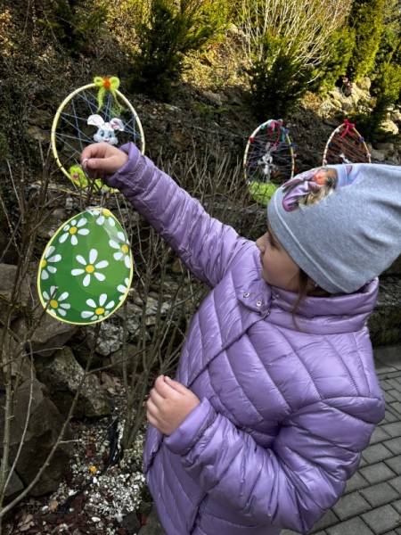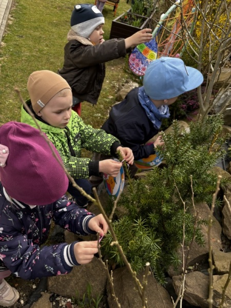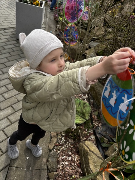 Dzieci z ogromnym zaangażowaniem przygotowywały się do nadchodzących Świąt Wielkanocnych. Kolorowały i ozdabiały pisanki, a także malowały jajka do koszyczków. Z radością zawieszały swoje prace na drzewkach, tworząc piękne, wiosenne dekoracje. Przedszkolaki troskliwie pielęgnowały również swój owies, który wcześniej samodzielnie zasiały – obserwując każdego dnia, jak rośnie i się zazielenia.