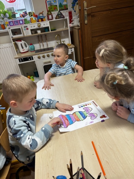 Dzieci wysłuchały opowiadania pt. „Serduszko z listków”, które stało się punktem wyjścia do rozmów o tym, jakie zachowania można nazwać życzliwymi, a jakie – nieżyczliwymi. Przedszkolaki zastanawiały się także, jak można reagować w trudnych sytuacjach, aby nie sprawiać innym przykrości i jak wspólnie tworzyć przyjazną atmosferę w grupie.