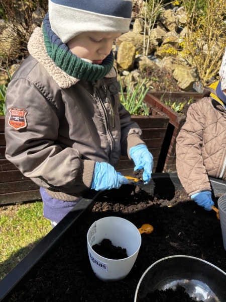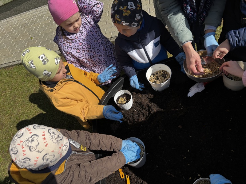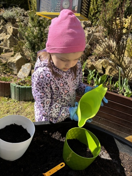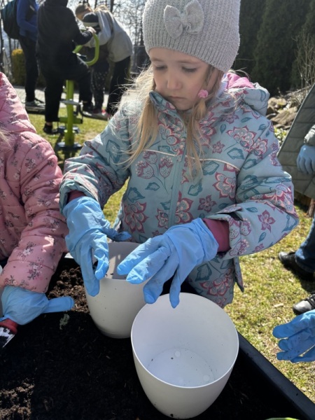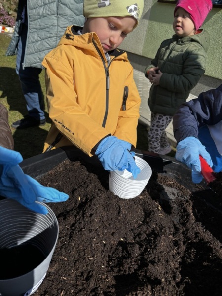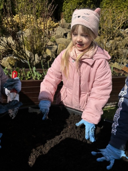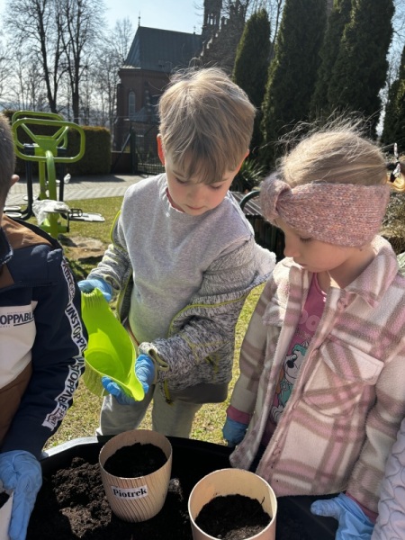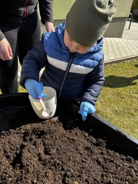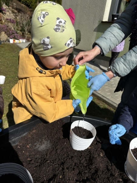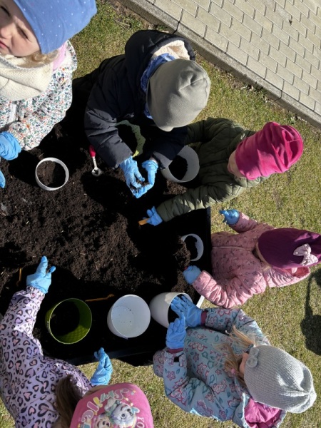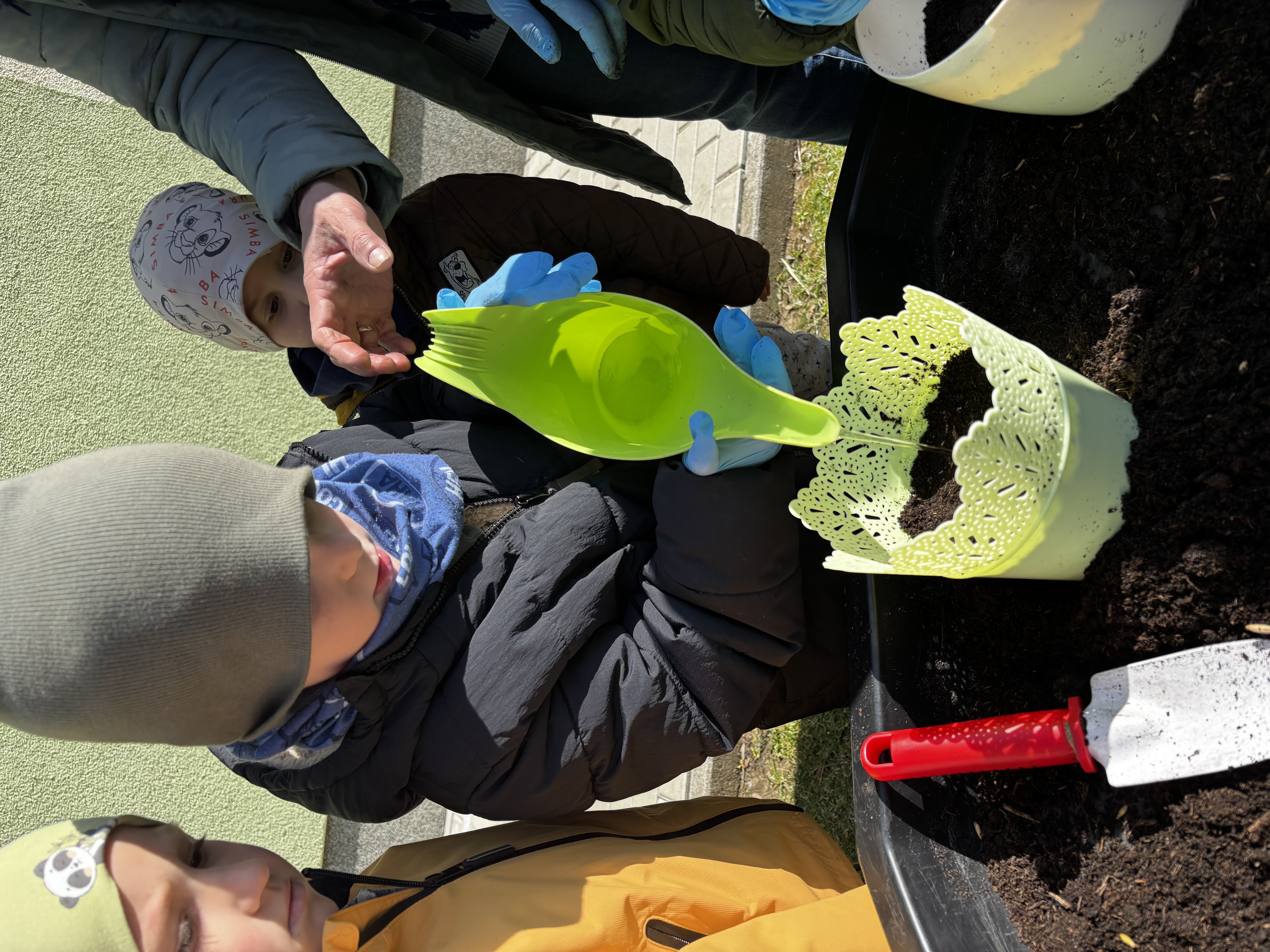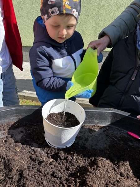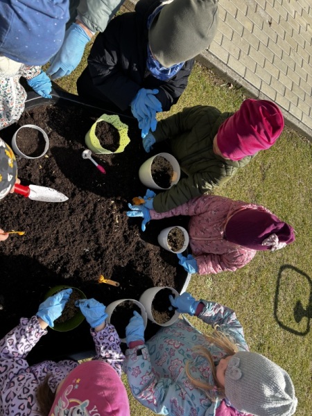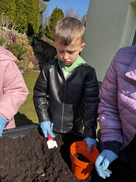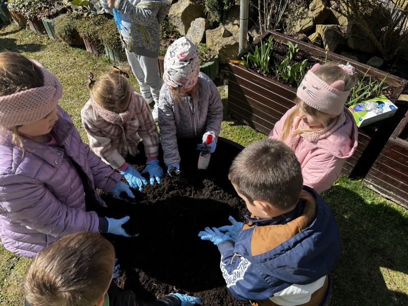 Dzieci przedszkolne z wielkim zapałem sadziły ; narcyzy ,żonkile, szafirki i krokusy. Na efekty ich pracy trzeba będzie poczekać aż do wiosny.