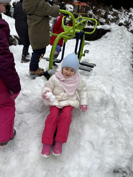 Zima okazała się doskonałym czasem na radosne zabawy na zewnątrz! Byliśmy na dworze, gdzie dzieci z ogromną radością korzystały z zimowej aury. Nie brakowało śmiechu, lepienia bałwanów, rzucania śnieżkami do celu oraz robienia aniołków na śniegu.