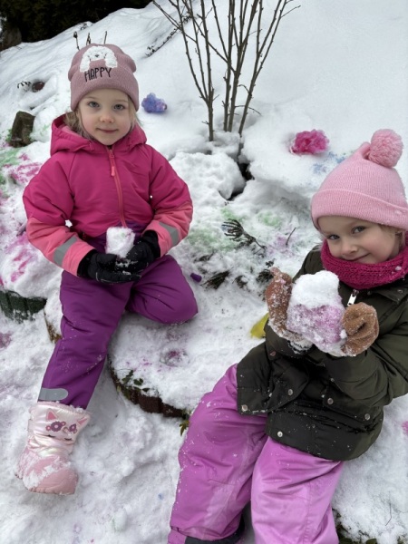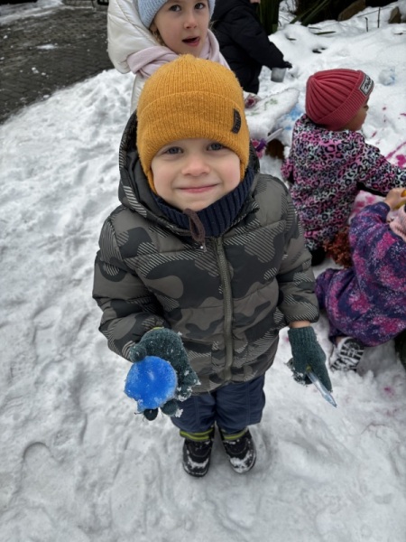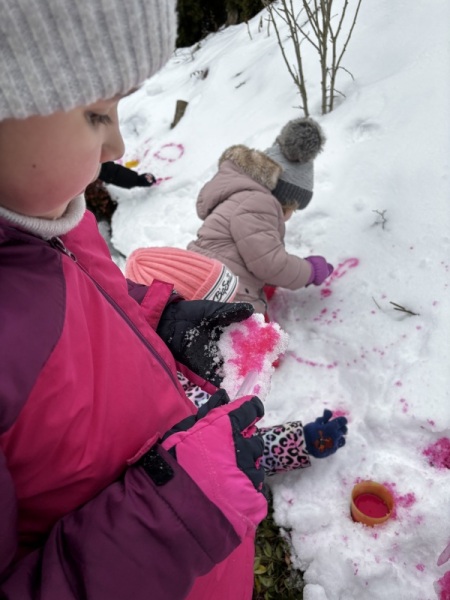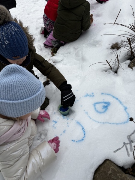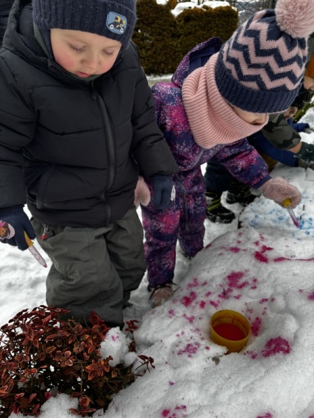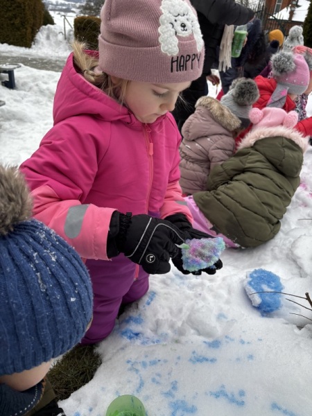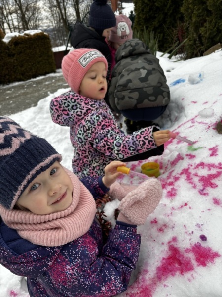 Jedną z ulubionych aktywności przedszkolaków było malowanie śniegu farbami