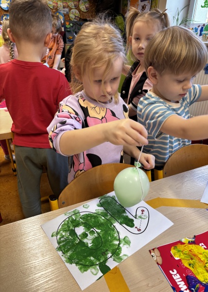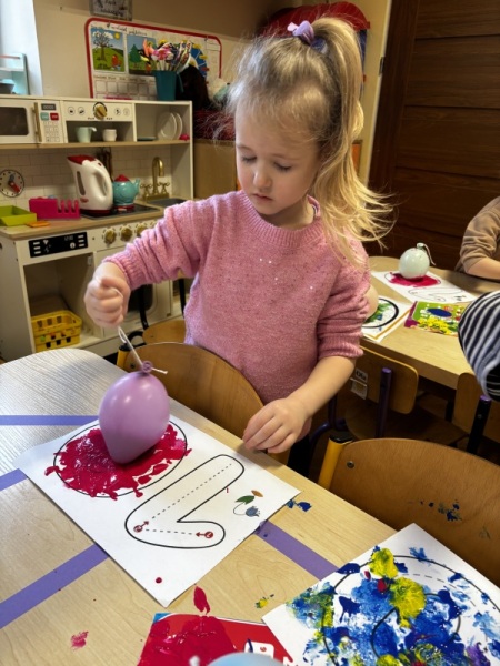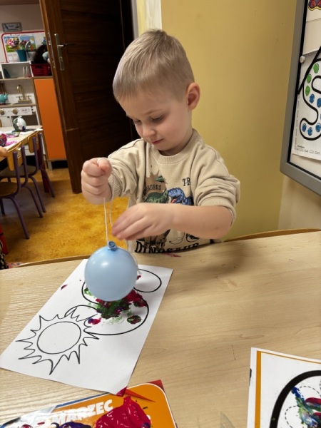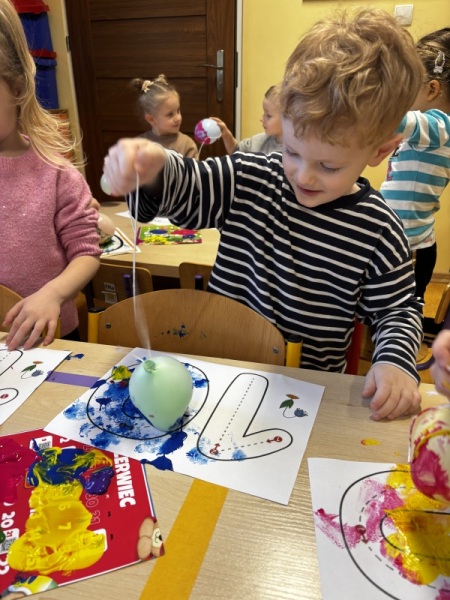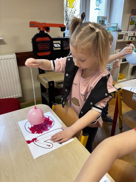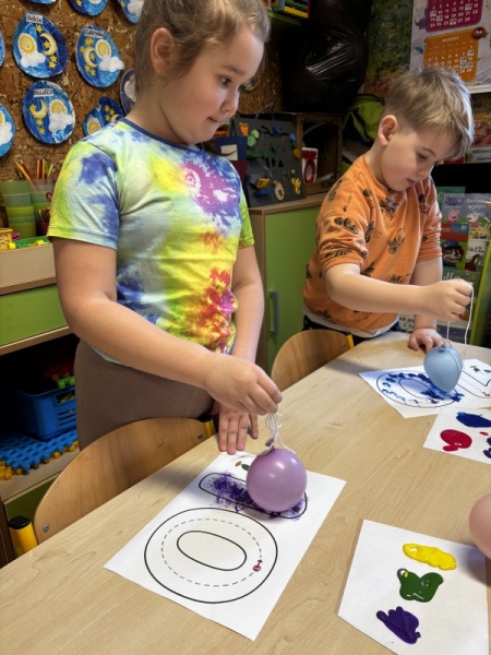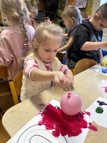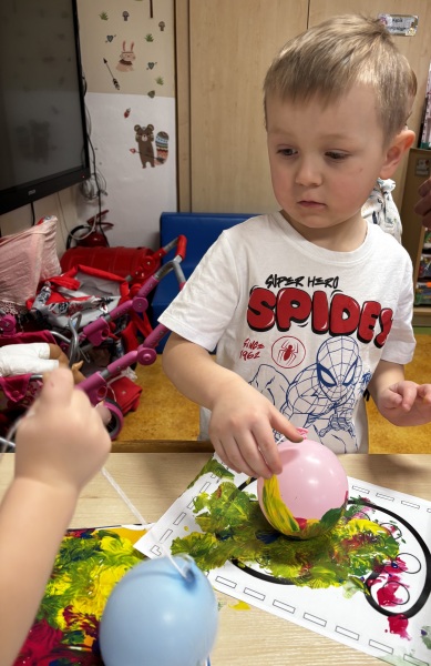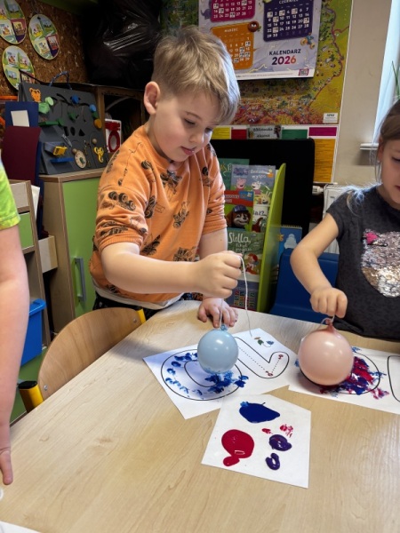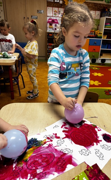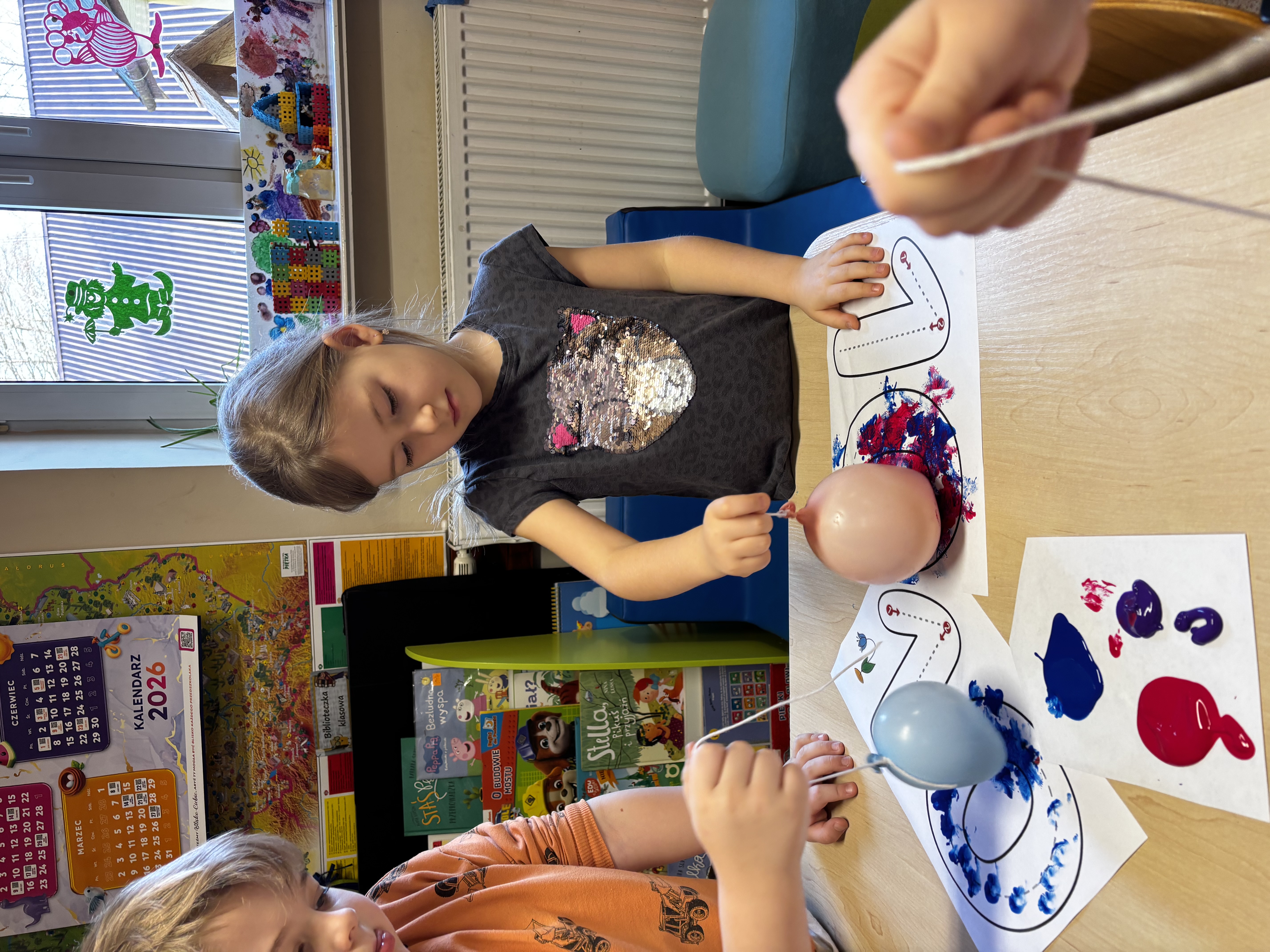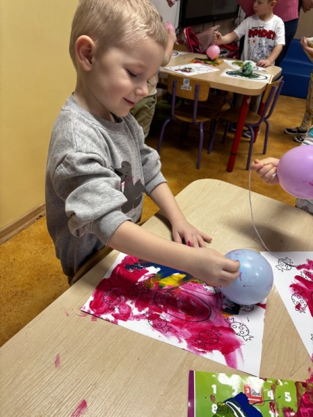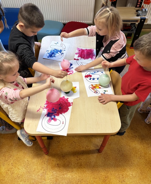 W naszym przedszkolu nieustannie poszukujemy aktywności, które wspierają wszechstronny rozwój dzieci, a jednocześnie dostarczają im mnóstwo radości. Jednym z takich wyjątkowych doświadczeń było malowanie obrazków balonem wypełnionym wodą – kreatywne zajęcia sensoryczne, które zamieniły zwykłe kartki papieru w prawdziwe, kolorowe dzieła sztuki.